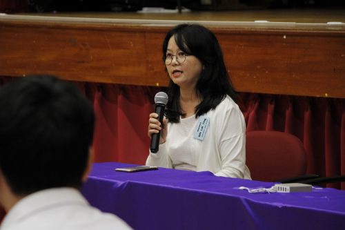 • Alumna Ms. Wendy LI sharing at the Morning Assembly