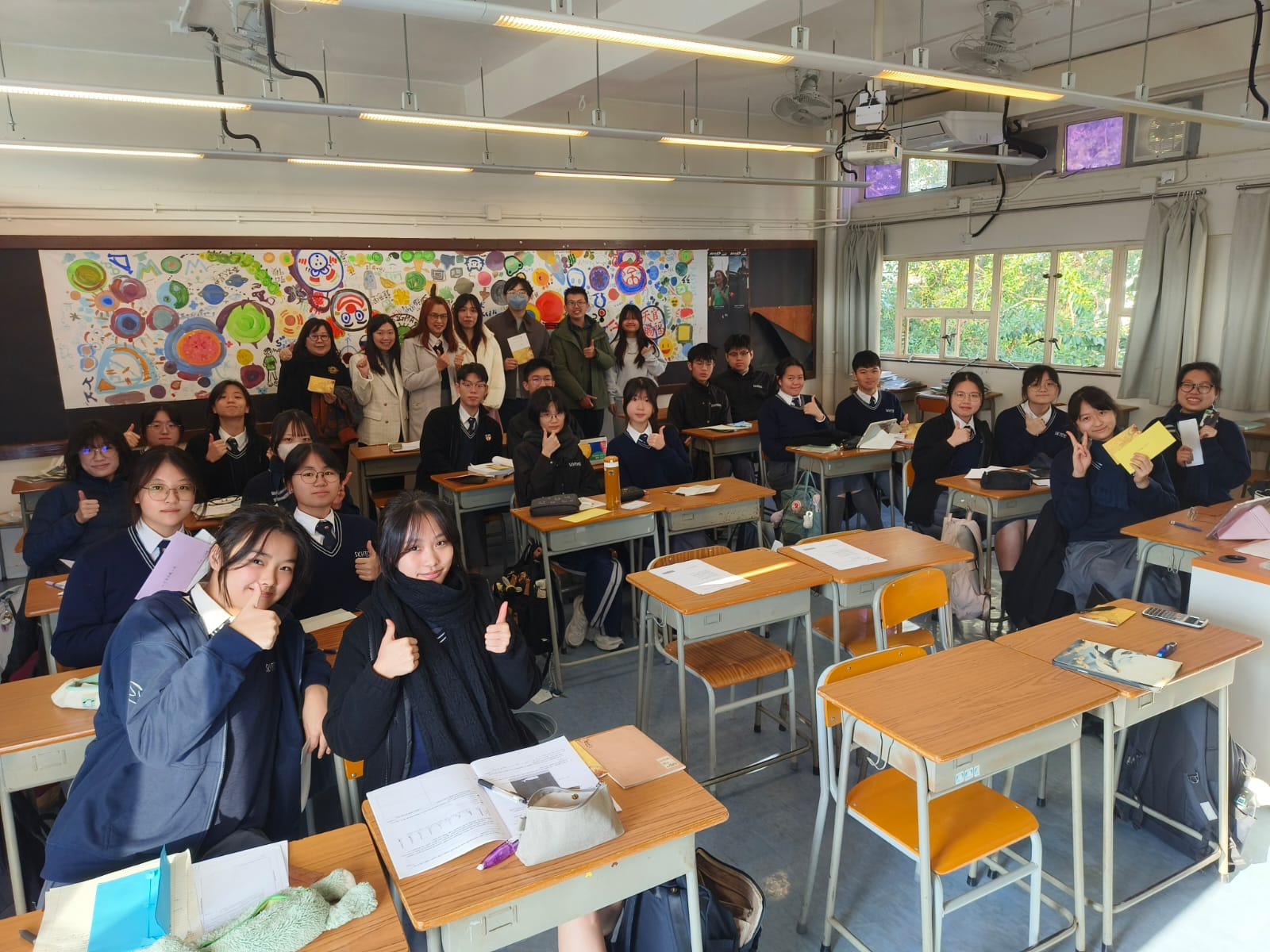 Wai Yin (Chief Advisor) and Ms Gigi WONG visited the F.6 classrooms in the morning,
